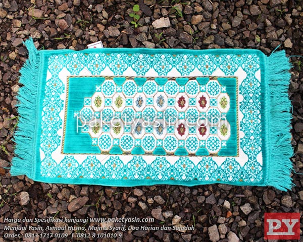 Sajadah Beludru warna hijau toska bertekstur.