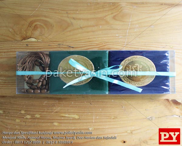 Paket ini berisi Yasin Saku Beludru + Asmaul Husna Saku Beludru + Tasbih Kayu + Mika